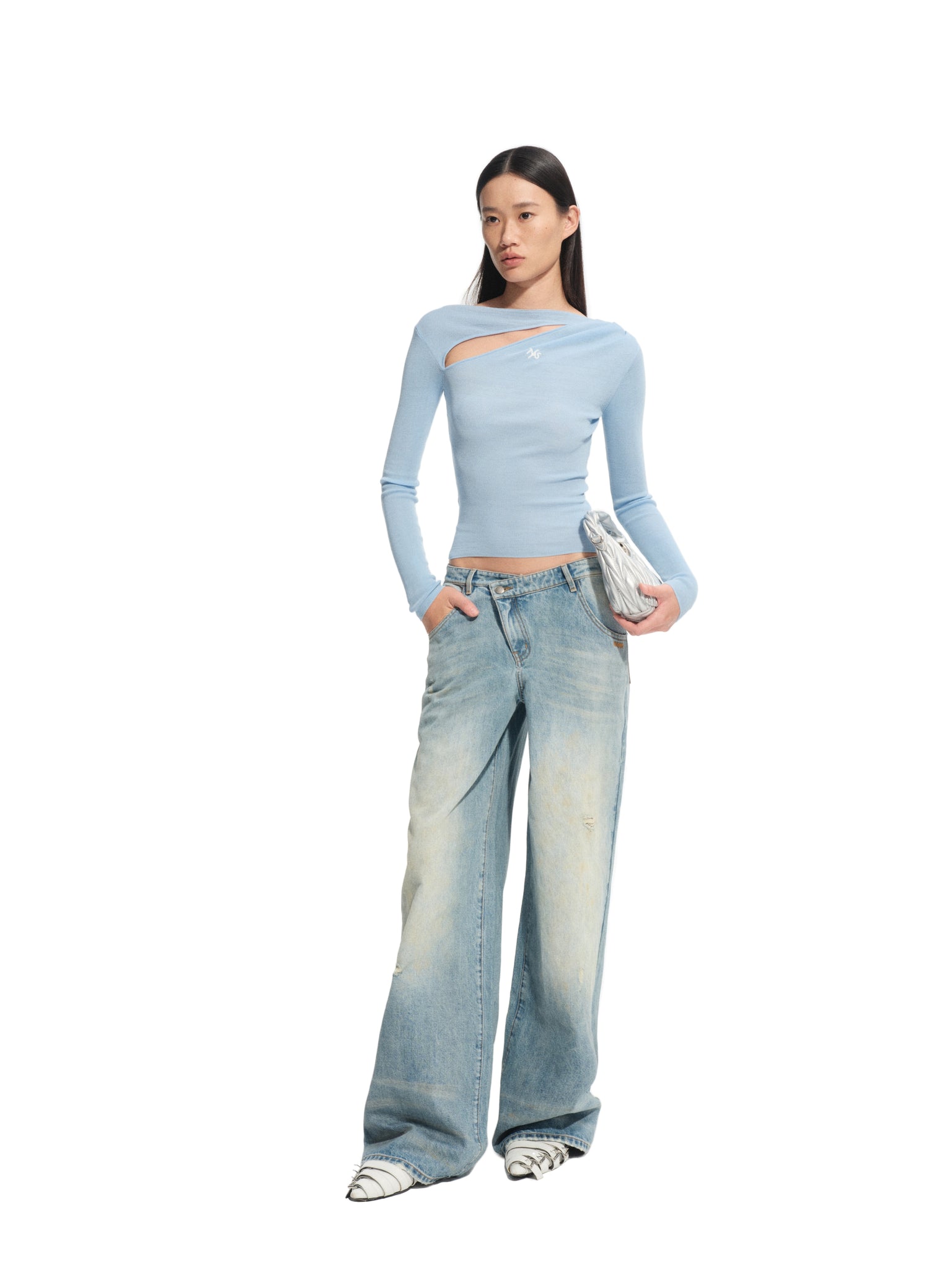 Clear Sky Blue Crescent Moon Knit Top
