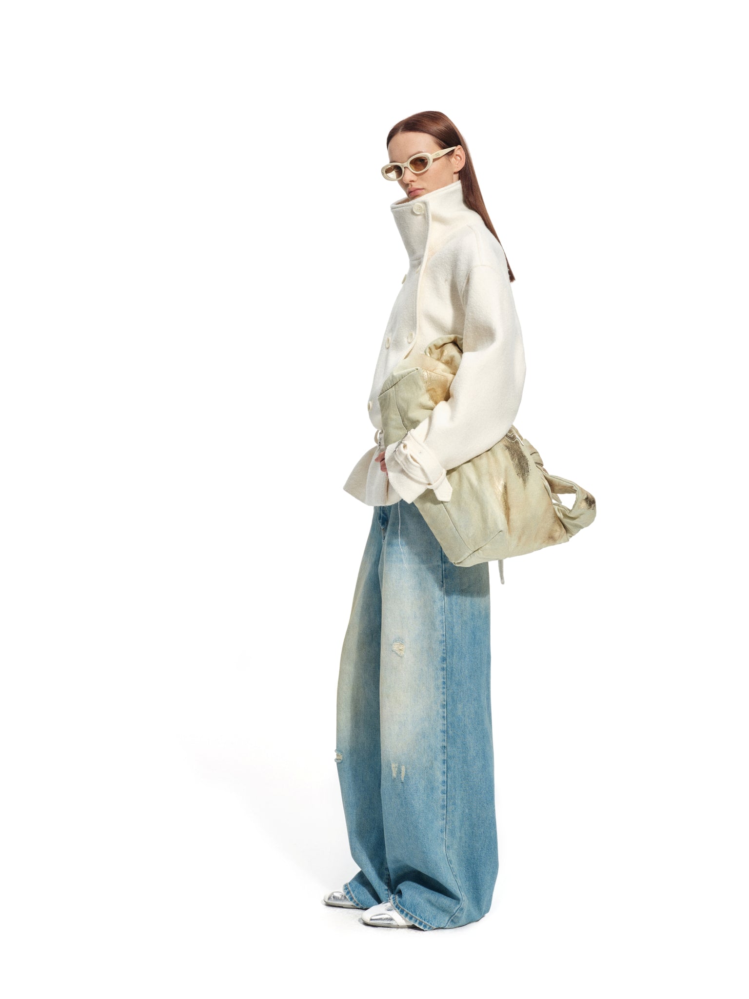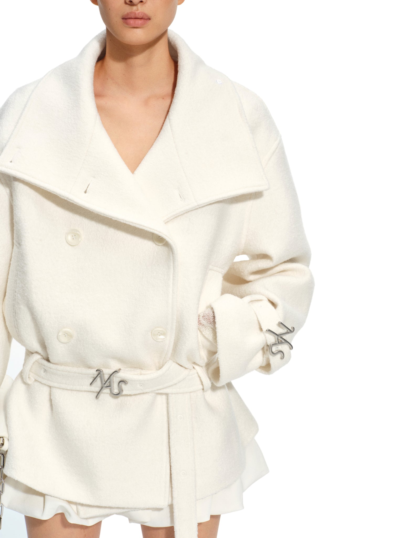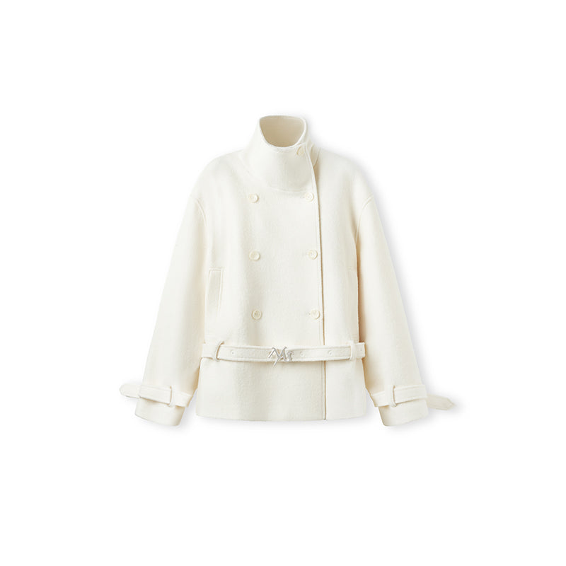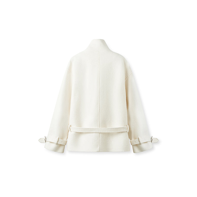 Frost White Layered Collar Woolen Jacket